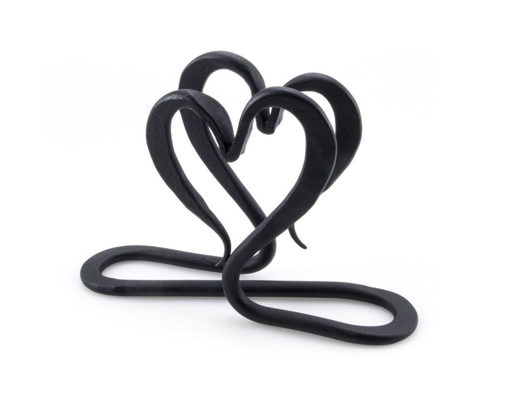 Elegantní ručně kovaný stojánek na ubrousky v černé barvě zaujme originálním motivem srdce a dodá vašemu stolu romantický i stylový nádech. Praktický doplněk do kuchyně, jídelny i na slavnostně prostřený stůl, Každý kousek vzniká tradičním kovářským postupem, kdy se kov zahřívá v ohni a následně ručně tvaruje do jemných linií. Každý kus je originál. Výsledkem je nadčasový design dvojitého srdce, který působí rustikálně, romanticky a zároveň minimalisticky. Materiál: vyrobený z ručně tepaného železa, velikost produktu cca: výška 10,5 cm. délka 16,5cm a šířka 3,5 cm, hmotnost cca: 340g. Ubrousky nejsou součásti balení.